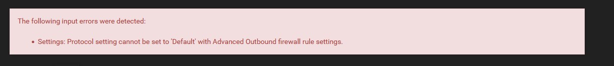 Settings: Protocol setting cannot be set to 'Default' with Advanced Outbound firewall rule settings.