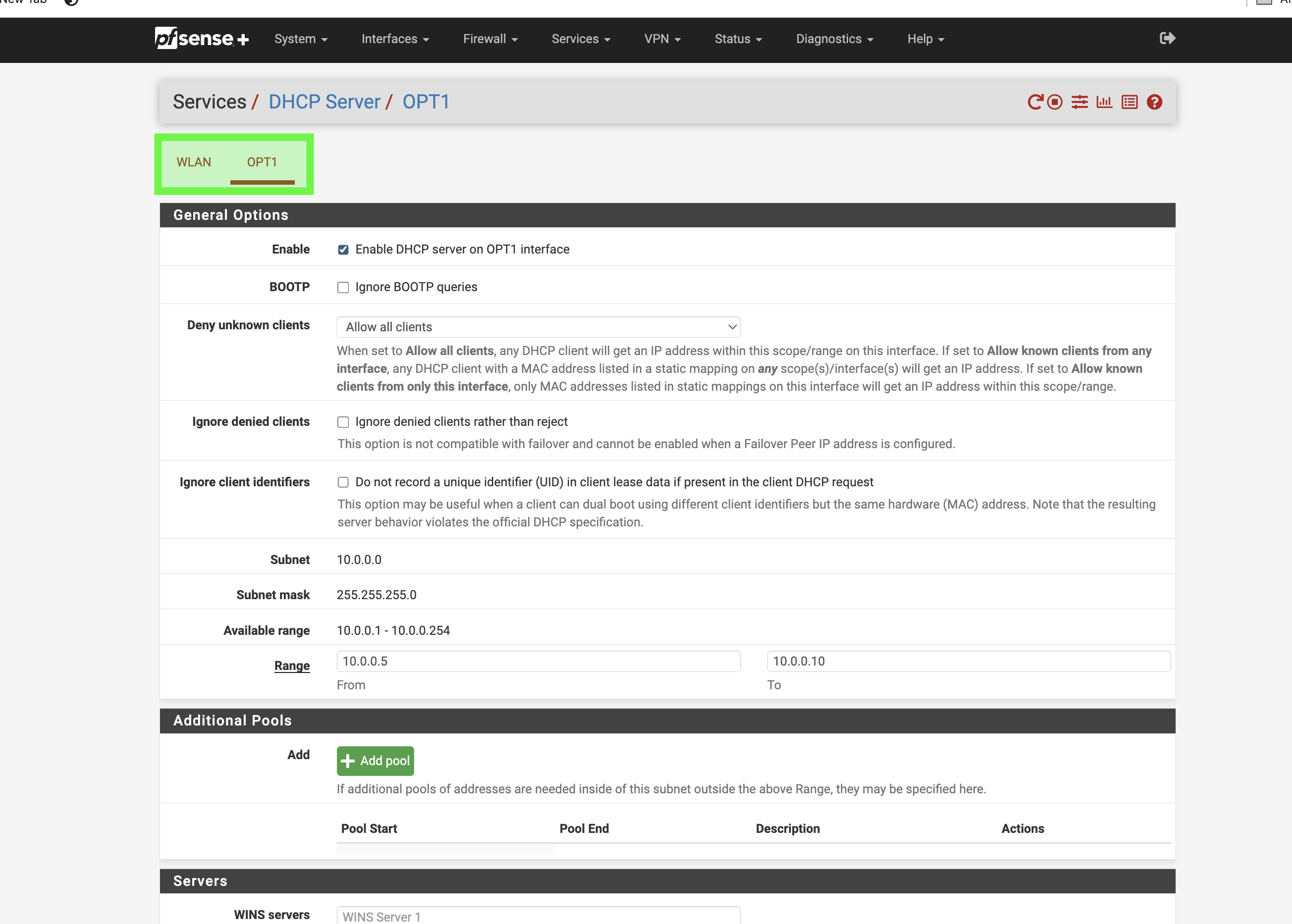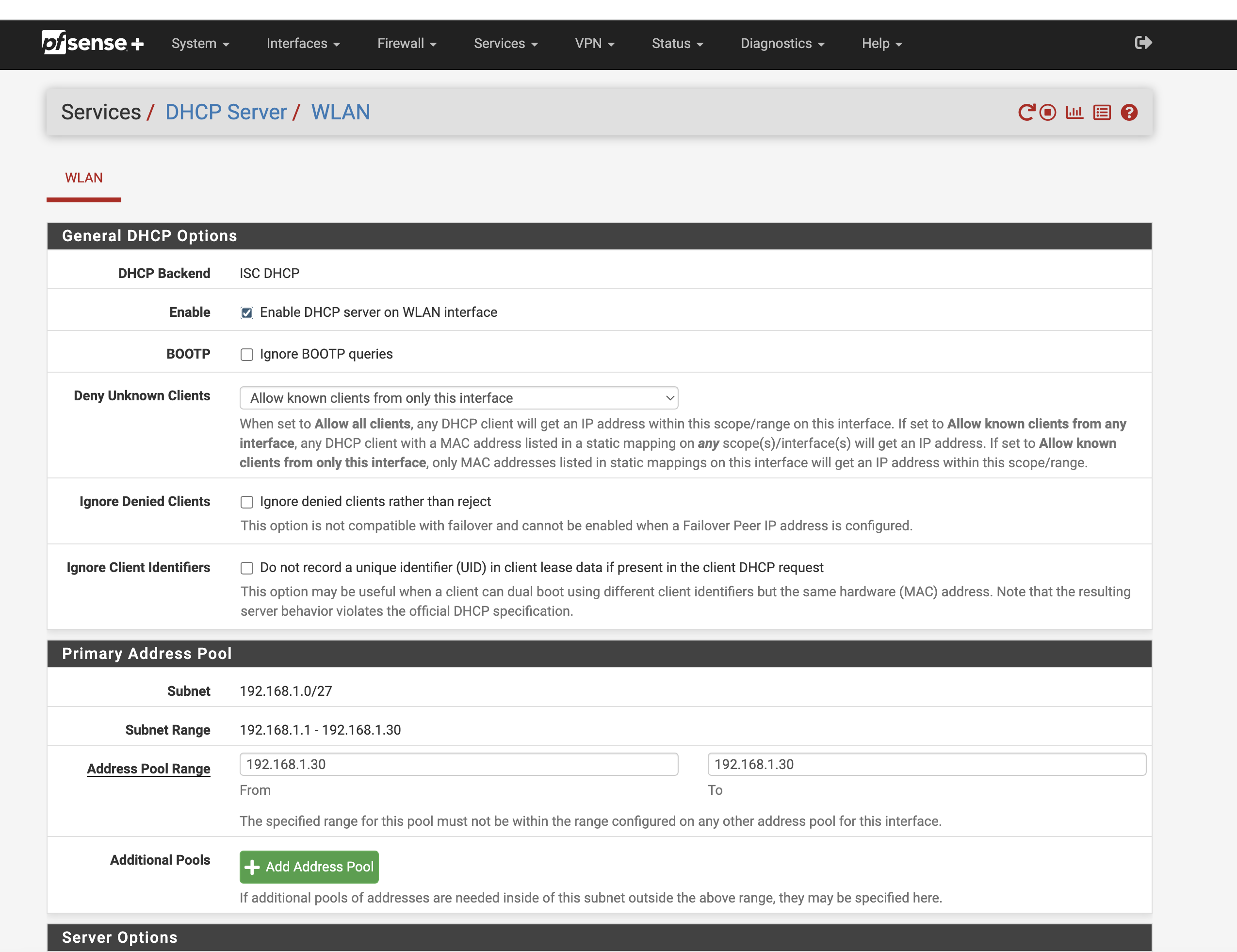 I can no longer set DHCP options for the wireless card as this has been removed on both Kea and ISC. It is now missing when you active the Wireless interface