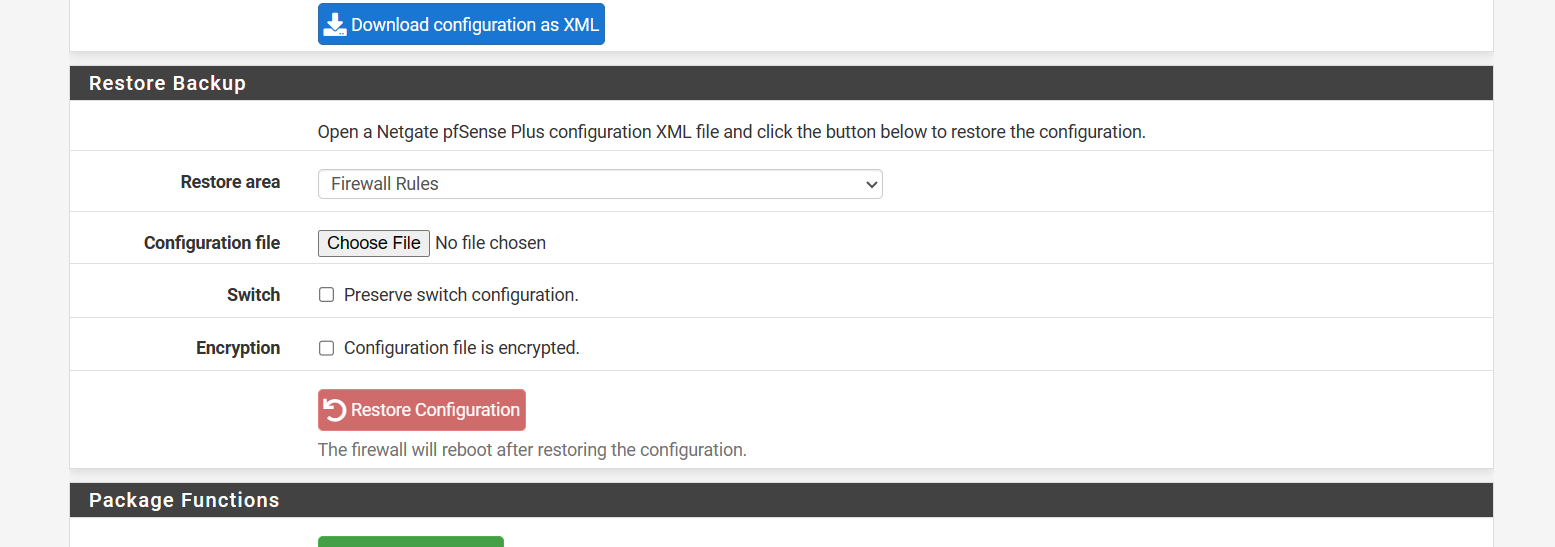 I wanted to report a bug I found in the Backup Restore section of pfSense Plus.