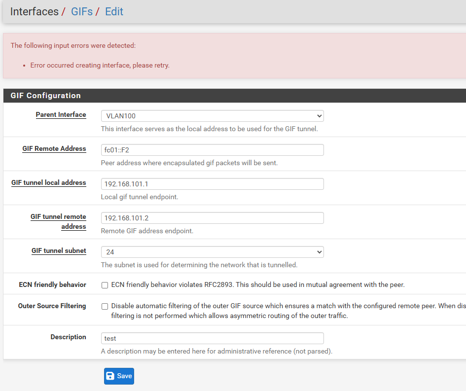 - For the GIF Tunnel Local Address, enter an IPv4 address (e.g., 192.168.101.1).