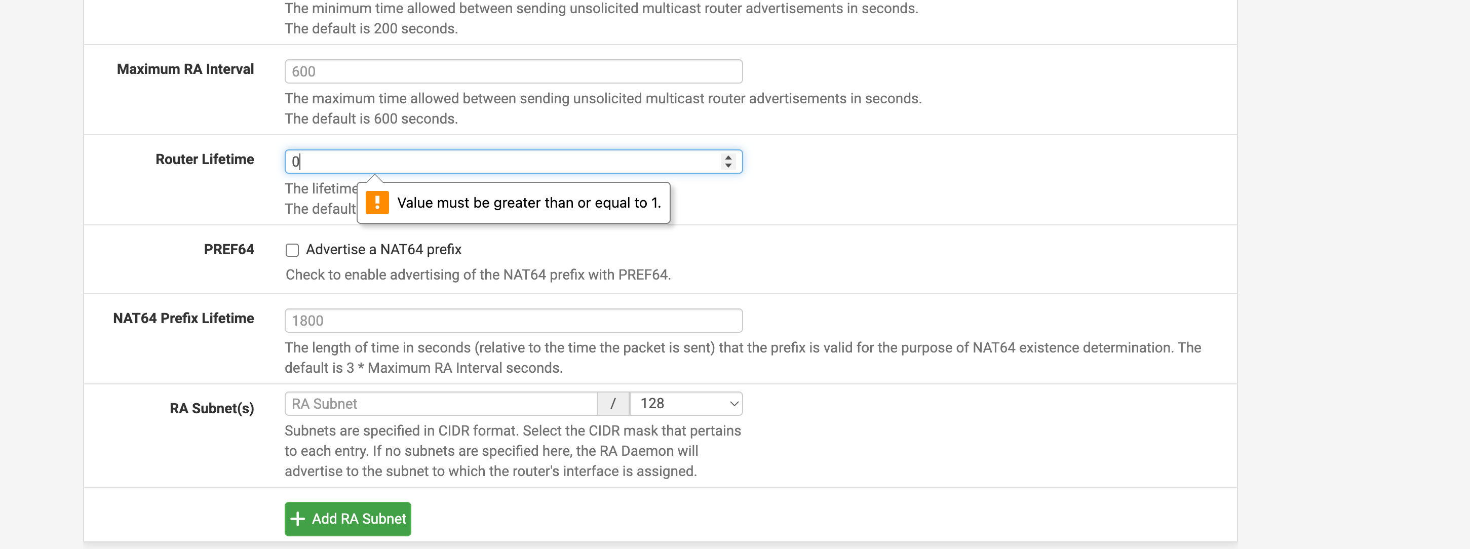 openIt is not possible to set RADVD router lifetime to 0 in the GUI