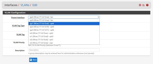 Current 25.07.1 and 25.11 beta reference parent interfaces in VLAN creation by interface dev name and by internal config name(wan-lan-optX) and do not mention actual interface description which would be a user-friendly thing to include.