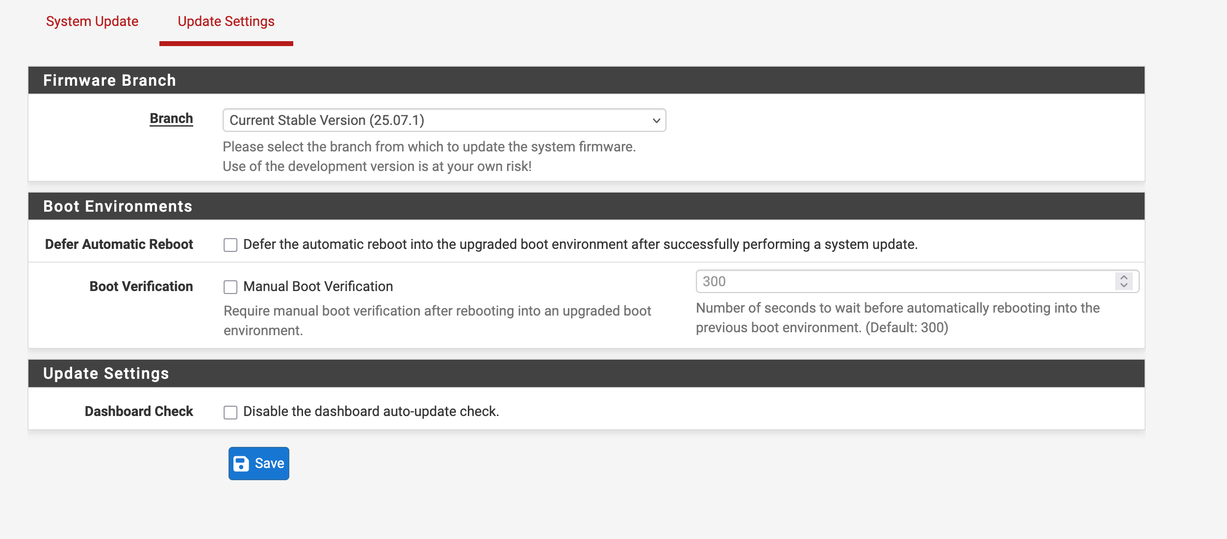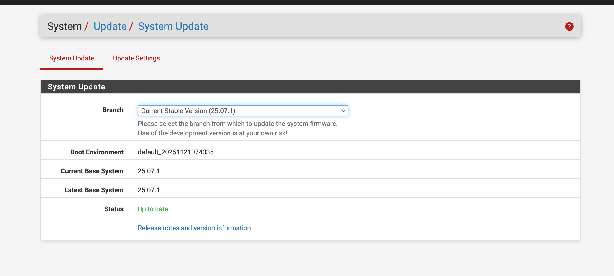 openGUI and package manager shows the RC branch despite the Stable branch is selected.