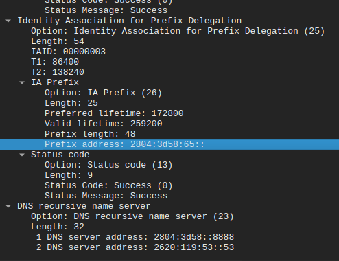 Attached image shows the packet capture of the interface receiving a PD assigned, however.