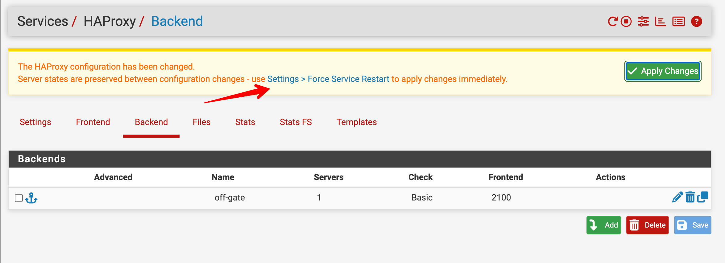 - Subject changed from HAProxy-Changing the port of an existing backend server, changes show in the GUI only but is not reloaded within haproxy itself to Forcing a serveice restart of HAProxy does not affect backend servers