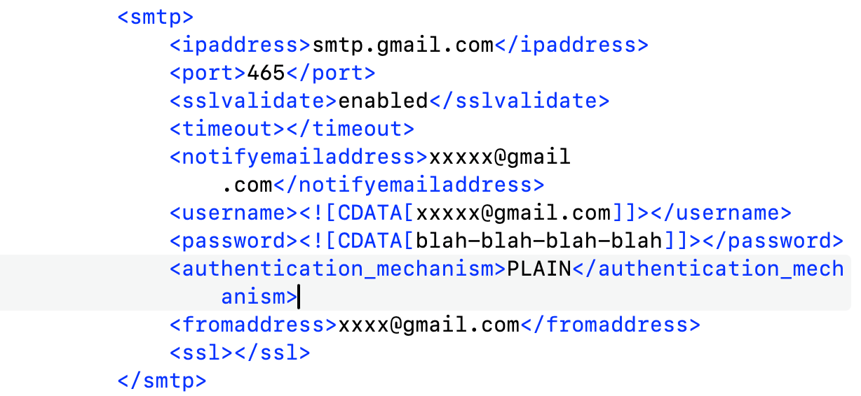 closedNotifications - Email auth password cannot contain "-" character, else is truncated