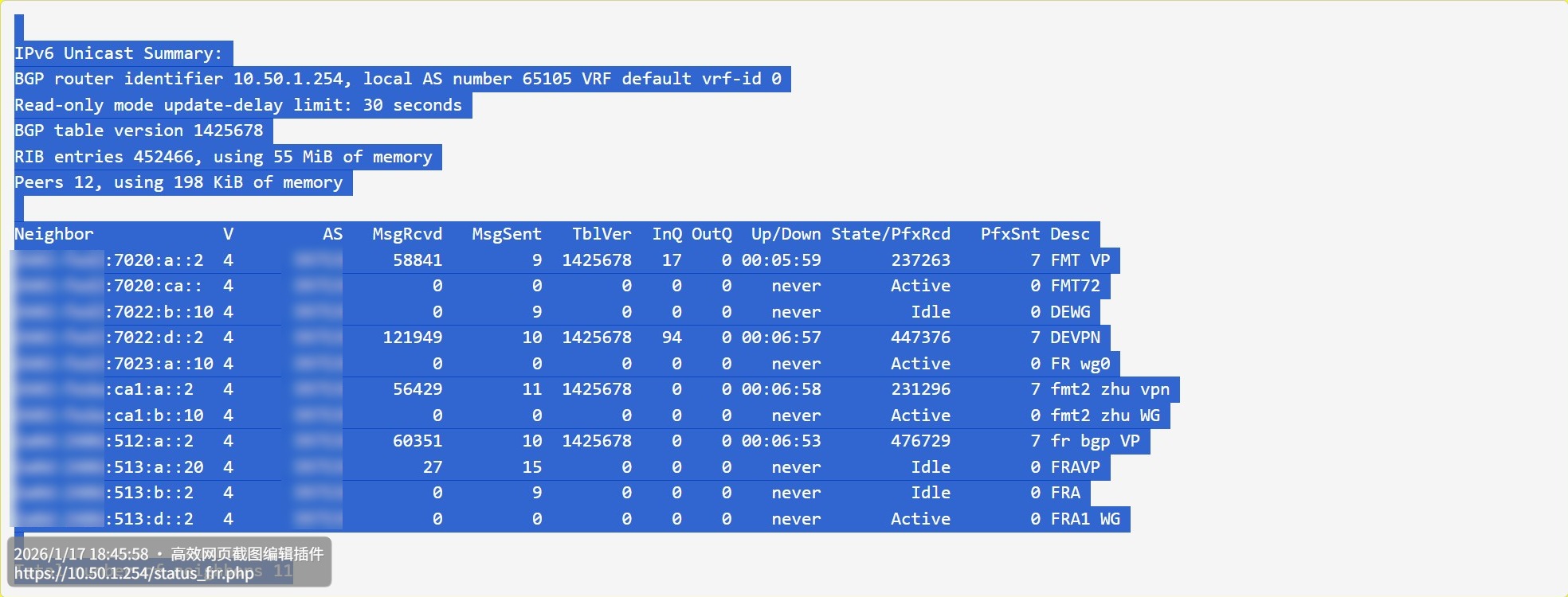 After deleting BGP Neighbors via the web interface, FRR remains unchanged.In other words, the web operation was not associated with the FRR service.