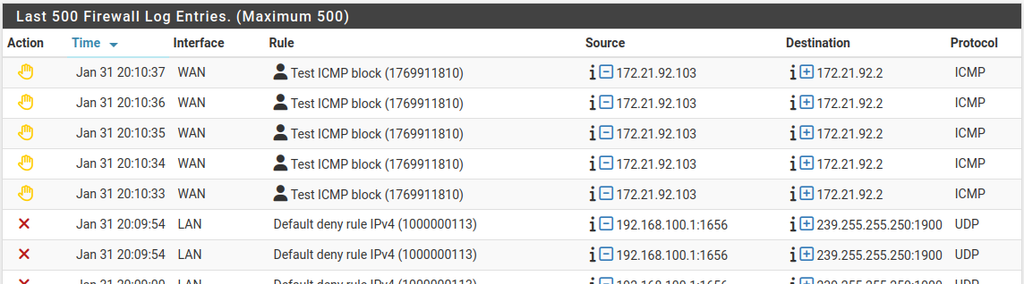 - Subject changed from firewall log lists action block when it should show reject. to Firewall log always shows reject rules under "Associated Rules"