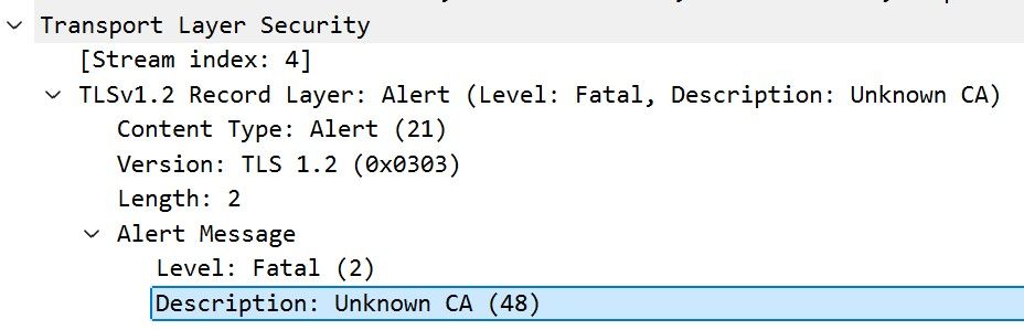 [duoauthproxy.lib.log#info] Closing the connection between the downstream application and the Authentication Proxy. Reason: [('SSL routines', '', 'tlsv1 alert unknown ca')]