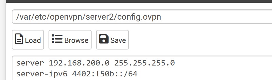 However, when setting up OpenVPN, when I choose the "track interface" option and specify an IPv6 prefix id (see screenshot), the resulting IPv6 server definition is not correctly updated in the OpenVPN config file (see screenshot).