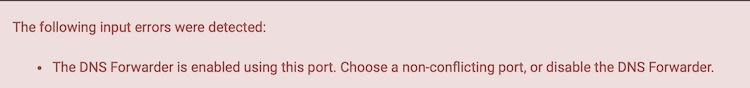 If you enable CoreDNS on port 53, and then attempt to enable DNS Resolver on the same port, you get: