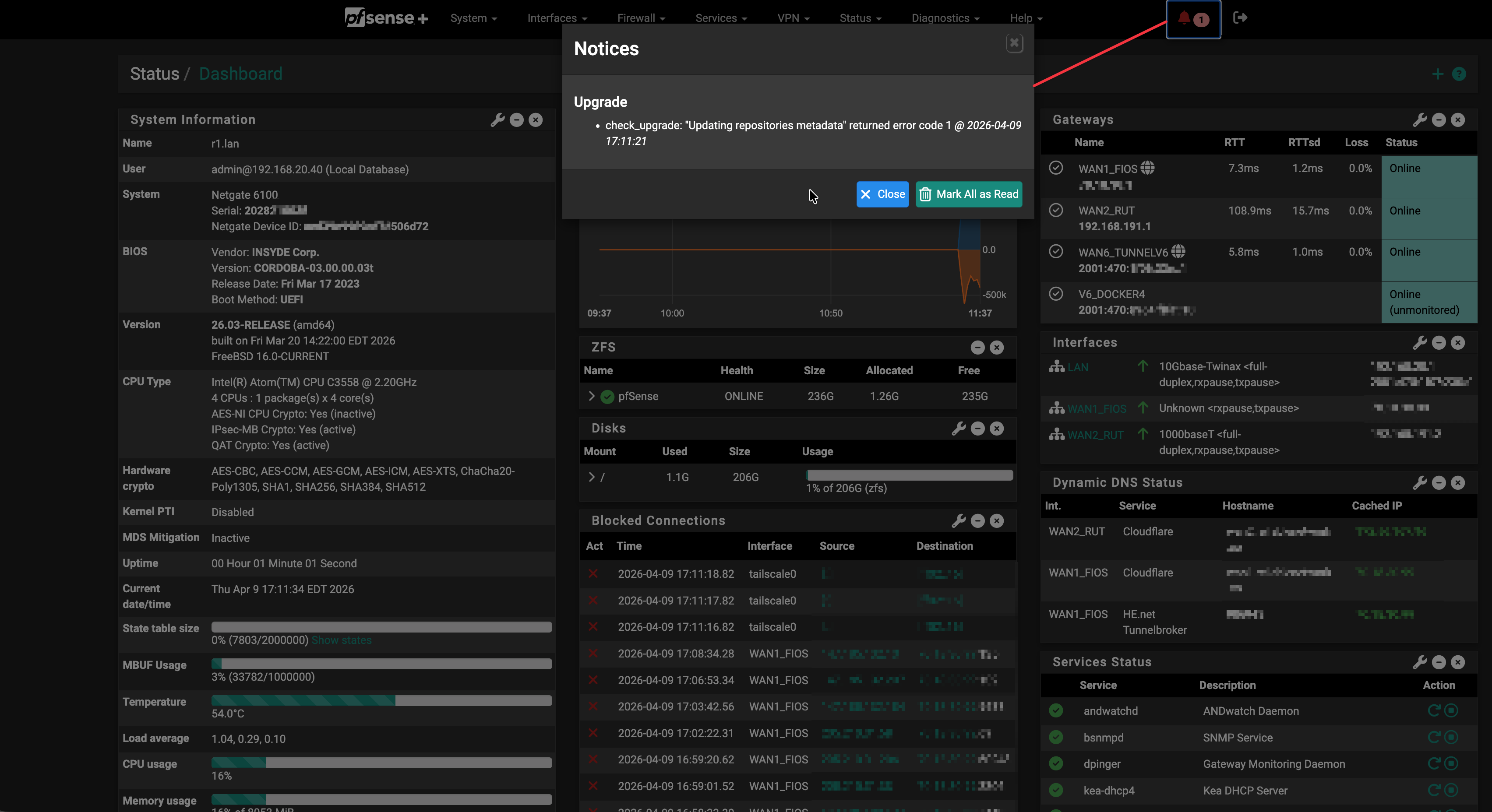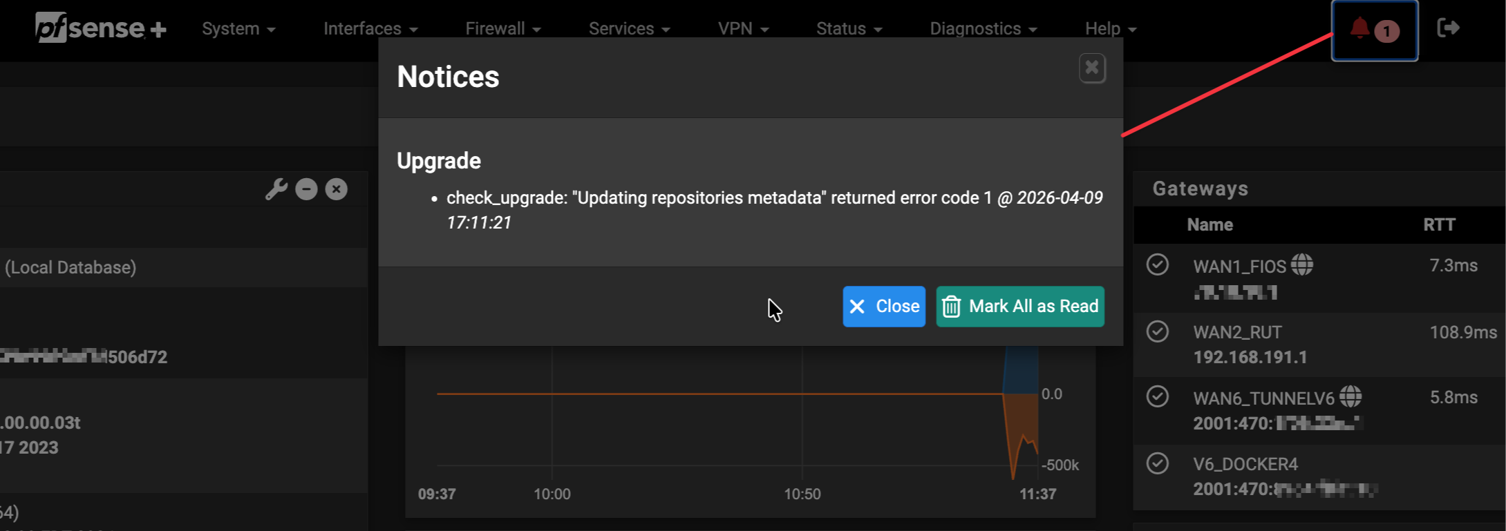 open"Updating repositories metadata" returned error code 1 appears on dashboard after fresh boot when Tailscale pkg is installed under certain unknown conditions