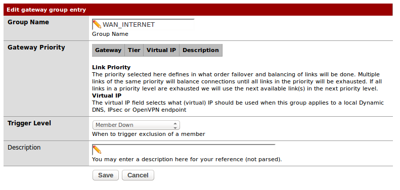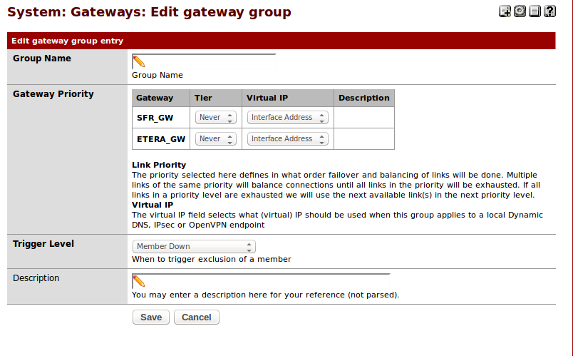 Since a few day parameters missing when I try to edit an existing gateway group on my pfSense 2.2