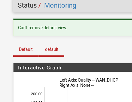 I managed to add a extra view named "default" in the monitoring page. When trying to remove said misstake it is not possible due to the name. (see image).